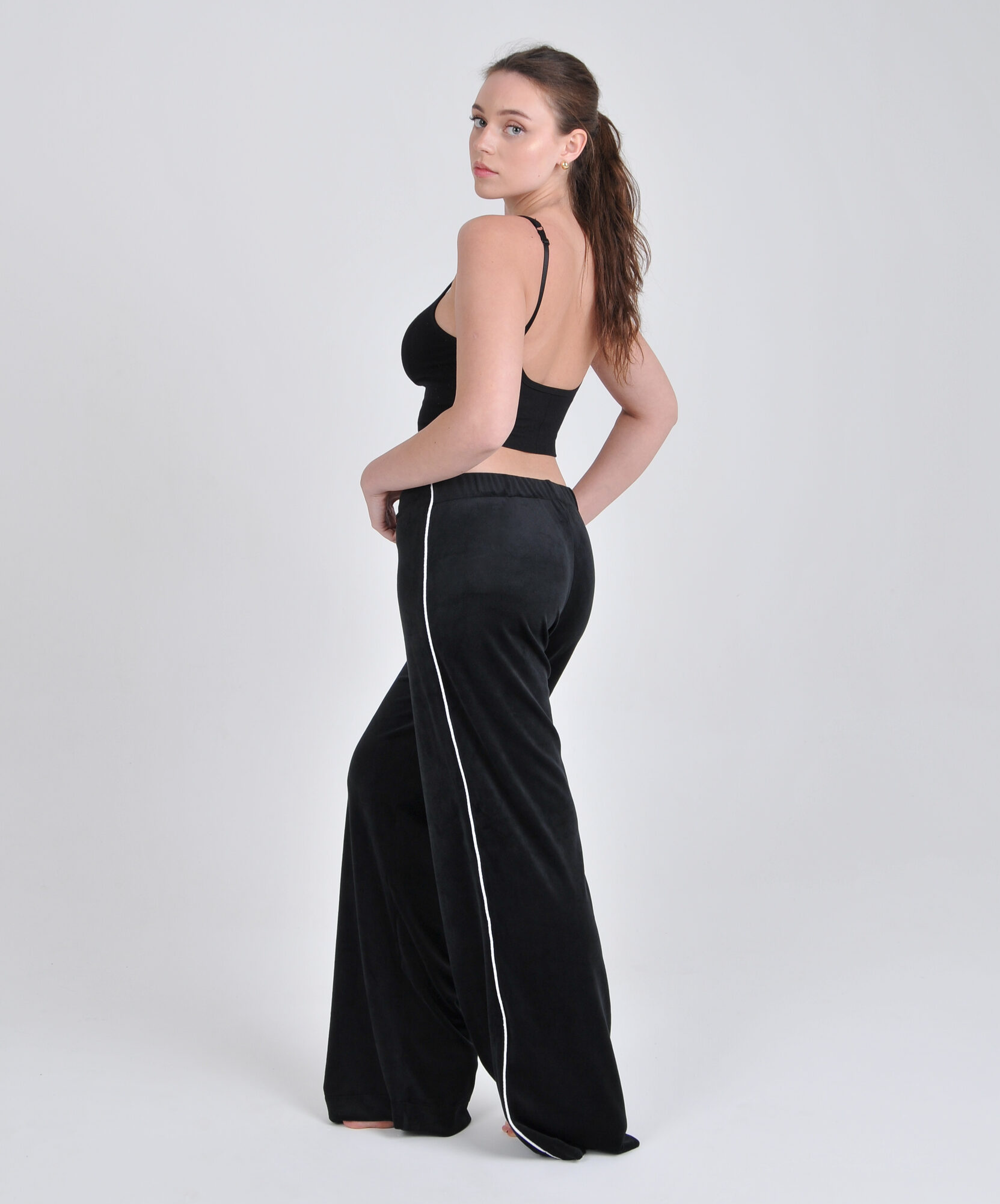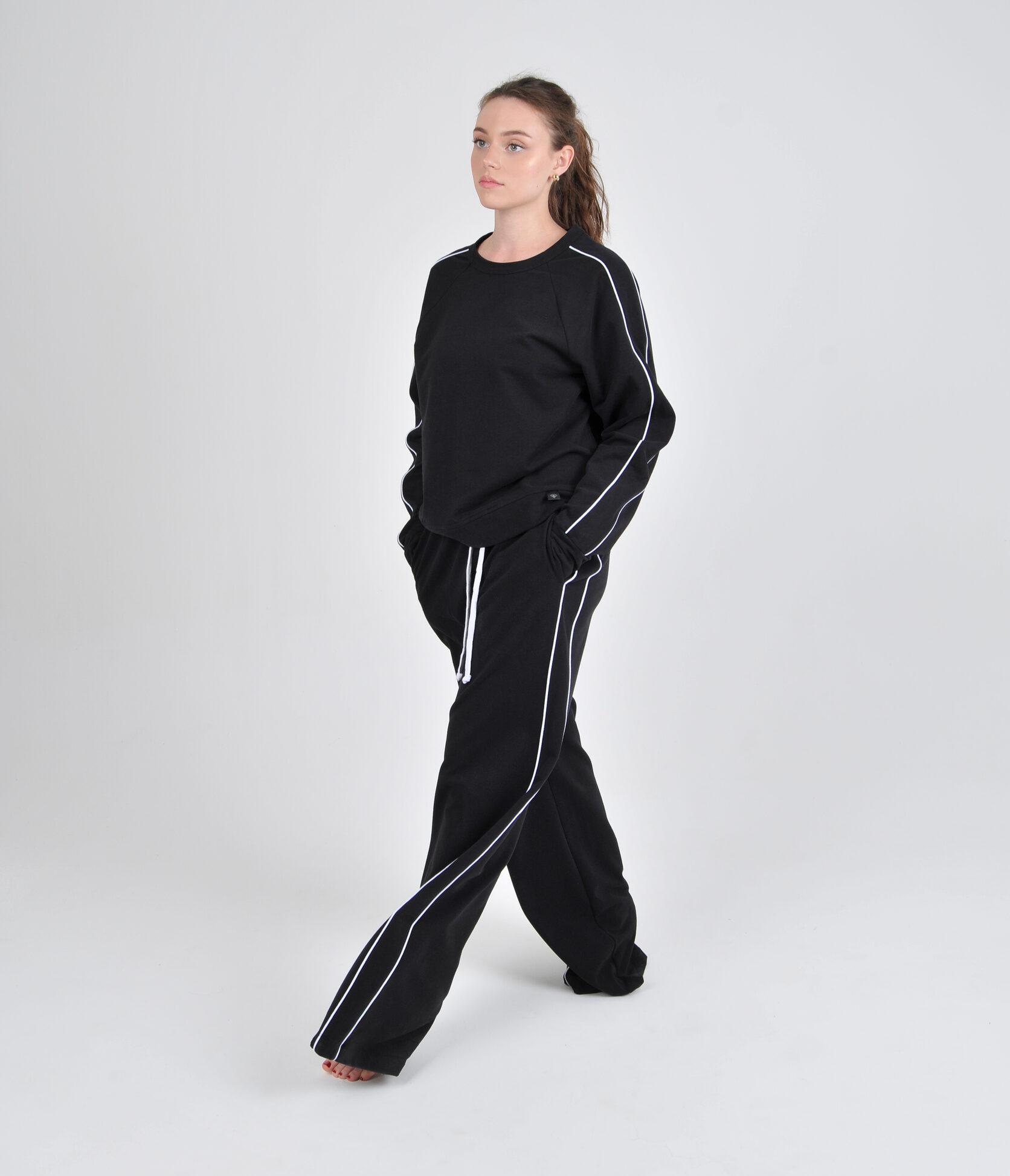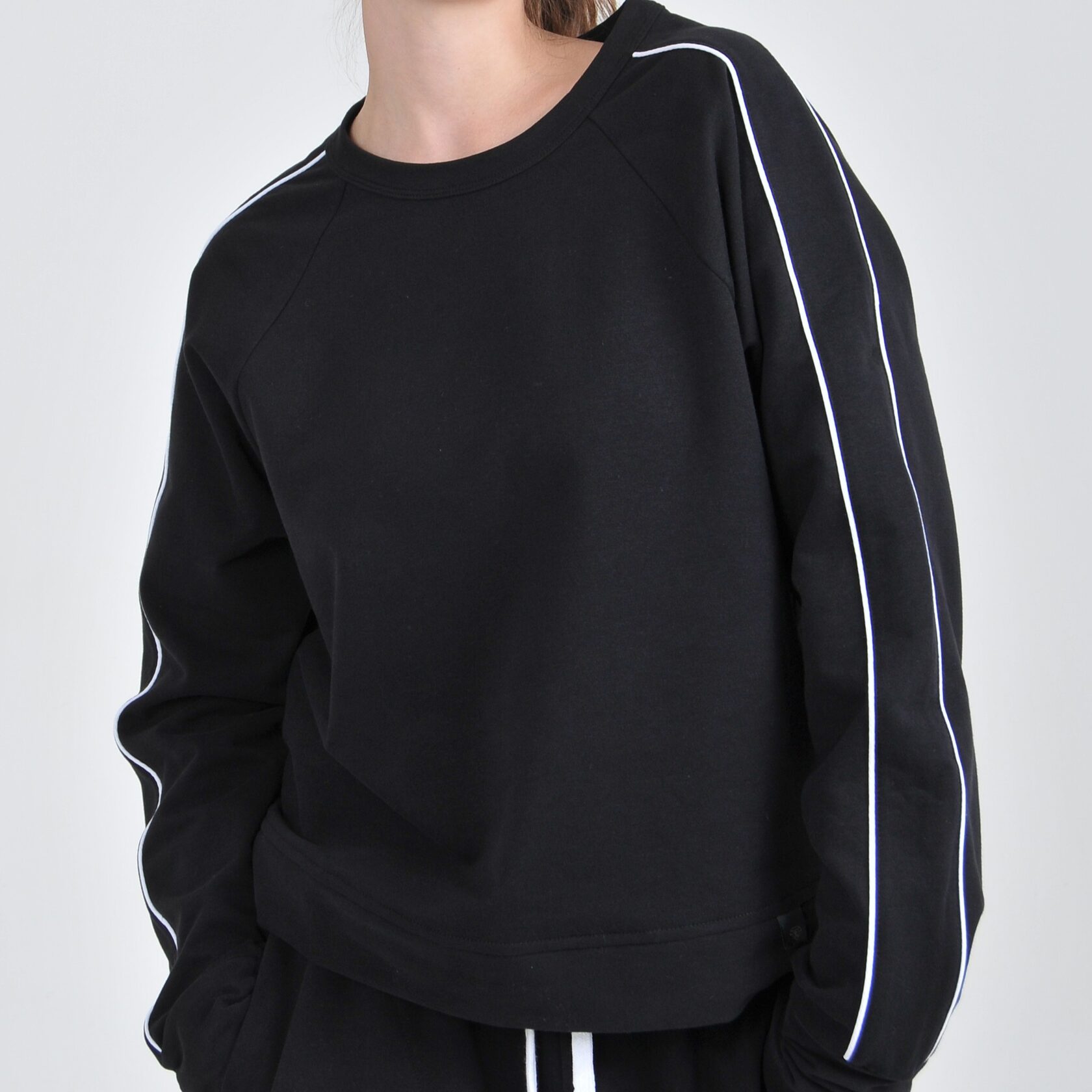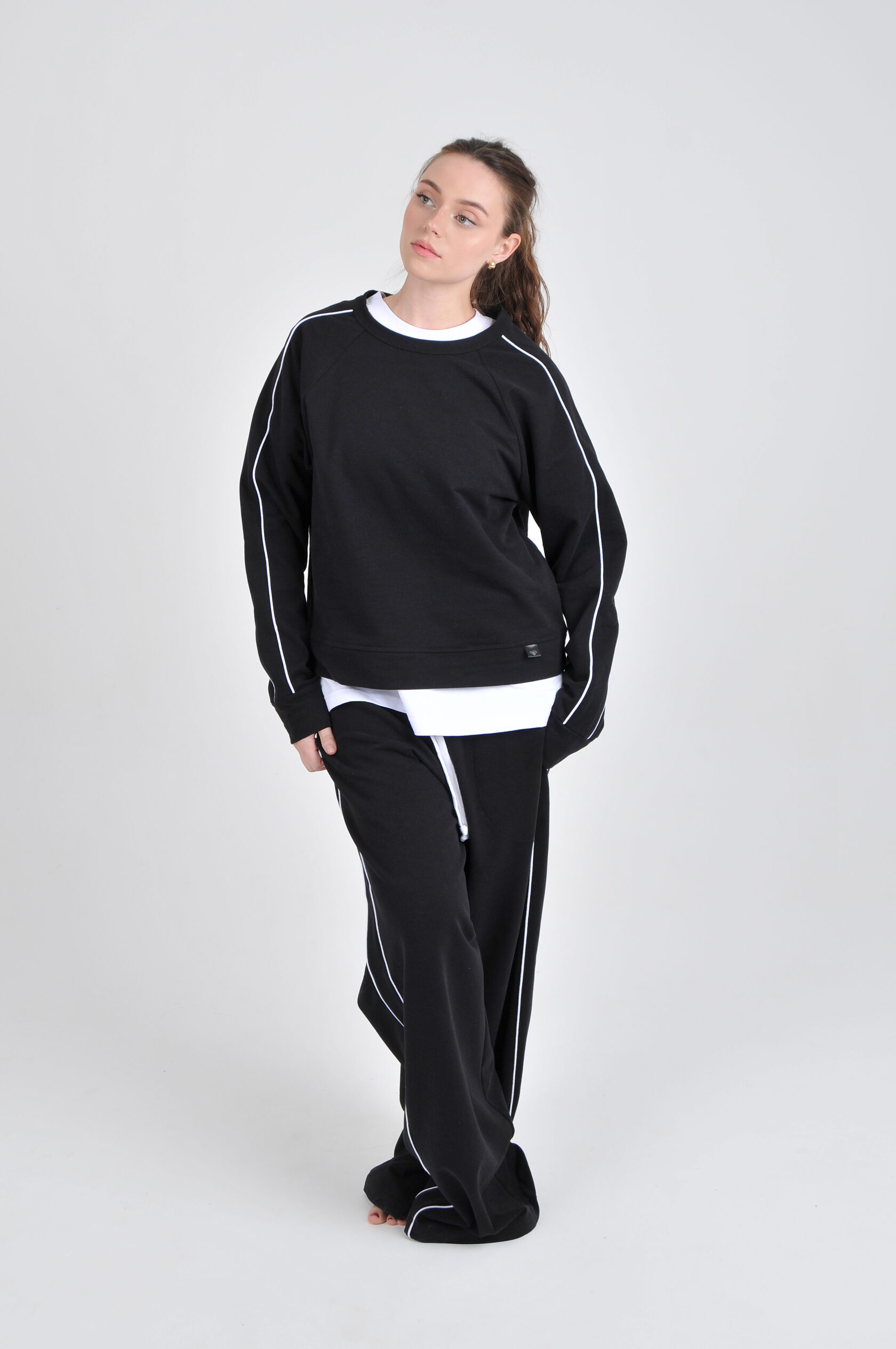 Мы используем премиальные турецкие ткани, шьём в России, ценим минимализм и детали. Белый кант - наша подпись. Он как линия света, которая проходит через всё.